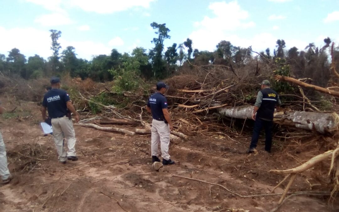 Técnicos de la Dirección de Fiscalización Ambiental Integrada (DFAI), del Ministerio del Ambiente y Desarrollo Sostenible (MADES), intervinieron el desmonte de un área boscosa nativa – Cambio Uso de Suelo, en la ciudad de Tavai, Departamento de Caazapá. El procedimiento se realizó con el acompañamiento del INFONA, Agentes del DEBOA de la Policía Nacional y Guardaparques.