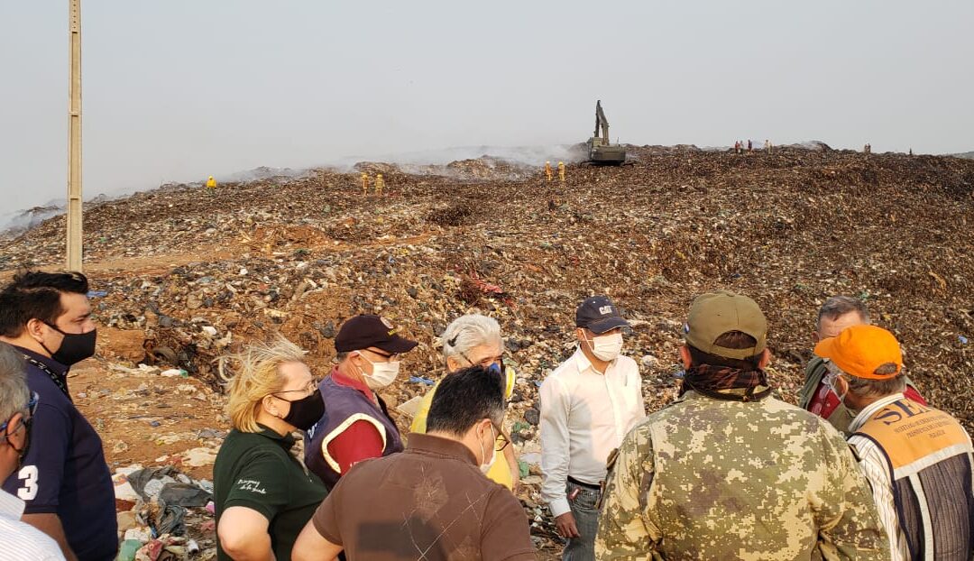 Durante el recorrido por los módulos se constató que no se ha llegado a extinguir totalmente el fuego, observándose focos que se reavivan por el viento, debido al mal manejo del funcionamiento del relleno sanitario, evidenciando el incumplimiento de las medidas de mitigación solicitadas por el MADES, como la cobertura diaria, el drenaje de gases, sistema de prevención deficiente, teniendo como consecuencia la emisión continua de gases de combustión, monóxido de carbono dióxido de azufre, óxido de nitrógeno.